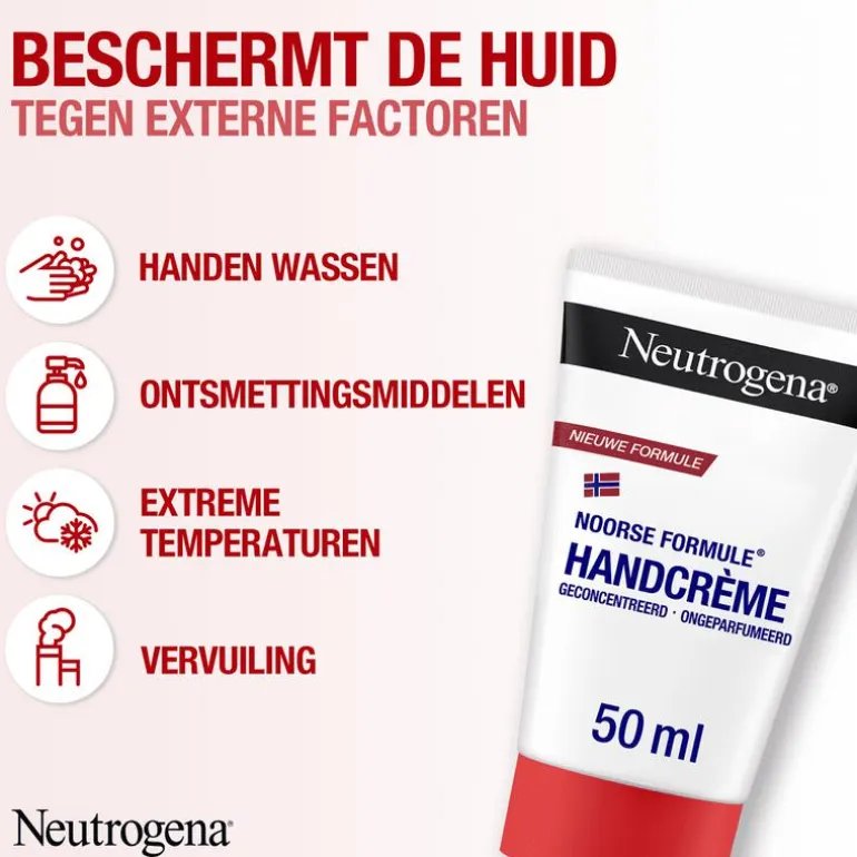De Neutrogena handcrème Noorse formule heeft een geconcentreerde formule en is ongeparfumeerd. De crème zorgt voor 24 uur langdurige verzorging, en verlicht extreem droge, schrale handen met slechts 1 druppel. De verzorgende handcrème is verrijkt met 40% glycerine en vitamine E – dermatologisch getest en beschermt de huidbarrière. Deze handcrème is precies wat je nodig hebt om je handen goed te verzorgen en droge handen tegen te gaan. Ideaal voor in de koudere maanden en geschikt voor de gevoelige huid.