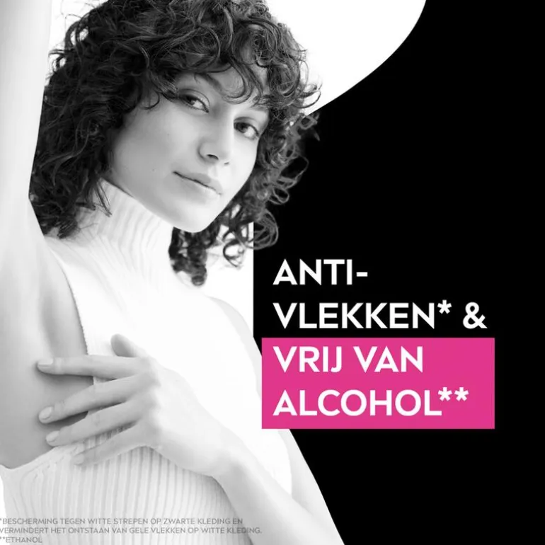 NIVEA Black & White Invisible Anti-Transpirant is de ideale keuze voor de vrouw die op zoek is naar effectieve bescherming én zorg voor haar kleding. Deze anti-transpirant is ontwikkeld met een unieke gepatenteerde anti-vlekken technologie die witte vlekken op zwarte kleding voorkomt en gele vlekken op witte kleding tegengaat. Zo kun je met vertrouwen je favoriete outfits dragen, zonder je zorgen te maken over vervelende vlekken.De formule biedt tot wel 72 uur betrouwbare anti-transpirantbescherming tegen zweet en geuren, terwijl het tegelijkertijd zacht is voor de huid. Dankzij de huidvriendelijke samenstelling, zonder ethylalcohol, is deze deodorant perfect voor dagelijks gebruik. De huidverdraagzaamheid is dermatologisch bewezen, zodat je zeker weet dat je huid goed wordt verzorgd.Daarnaast is de NIVEA Black & White Invisible ook verkrijgbaar in een handige pocket size mini-verpakking. Dit maakt het eenvoudig om je favoriete deodorant altijd bij je te hebben, of je nu onderweg bent, op reis gaat of een drukke dag hebt. Met deze mini-versie geniet je overal van langdurige frisheid, krachtige bescherming en kleding zonder vlekken.
