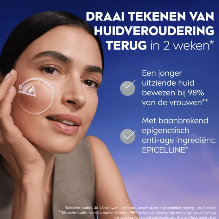 - Ja, wetenschappelijk onderzoek heeft aangetoond dat EPICELLINE® tekenen van huidveroudering in 2 weken terugdraait*. De formule van het EPICELLINE® serum verbetert de huidstructuur met 25%, vermindert (voor 84% bewezen) zichtbaar rimpels én versterkt de huidweerstand tegen externe factoren. Bovendien ervaart 85% van de vrouwen een strakkere huid met zichtbaar minder rimpels*.