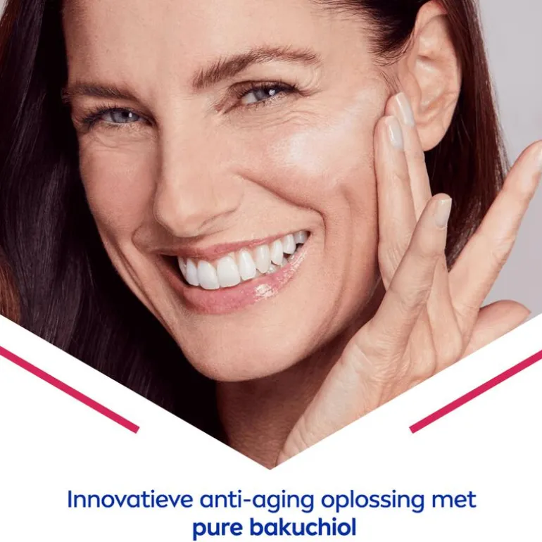 In de nacht is je huid het meest ontvankelijk voor verzorgende bestanddelen. Gebruik daarom NIVEA Cellular Expert Lift Anti-Age Nachtcrème om je huid intensief te verzorgen. De nachtcrème dringt tot in de cellen door en biedt de hele nacht diepe verzorging. Zo word je wakker met een gehydrateerde, verzorgde huid die de krachtige ingrediënten van deze nachtcrème optimaal heeft opgenomen. De speciale formule werkt anti-age, vermindert rimpels en heeft een beschermende werking.NIVEA CELLular Expert Lift Anti-Age Dagcrème bevat bakuchiol, een plantaardig ingrediënt vergelijkbaar met retinol, dat de productie van collageen stimuleert voor een gladdere en stevigere huid. Het beschermt tegen vrije radicalen en is geschikt voor alle huidtypen, inclusief de gevoelige huid. Daarnaast bevat de crème macro en micro hyaluronzuur, die diepe hydratatie bieden en rimpels verminderen door tot 1000 keer hun gewicht in water vast te houden. Hierdoor worden rimpels van binnenuit verminderd. • Stimuleert de cellen om meer collageen aan te maken• Definieert de contouren en verstevigt de huid• Vermindert zichtbaar diepe rimpels• Krachtig alternatief voor retinol• Plantaardige oorsprong• Geschikt voor alle huidtypen• Verrijkt met bakuchiol en twee soorten hyaluronzuur