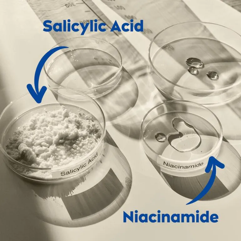 Aqua, Glycolic Acid, Dimethicone, Glycerin, Tapioca Starch, Cetearyl Alcohol, Glyceryl Stearate, Sodium Hydroxide, Gluconolactone, PEG-40 Stearate, PEG-150 Distearate, Salicylic Acid, Niacinamide, Panthenol, Glycyrrhiza Inflata Root Extract, Pantolactone, Xanthan Gum, Trisodium EDTA, Citric Acid, Phenoxyethanol, Parfum