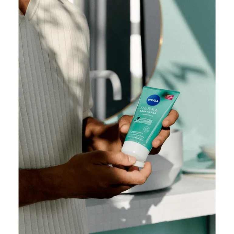 NIVEA DERMA Skin Clear Scrub is een effectieve scrub, speciaal ontwikkeld voor de onzuivere huid. Bestrijd mee-eters, puistjes en andere onzuiverheden effectief door je huid intens te reinigen met deze NIVEA reinigingsscrub.De scrub reinigt de poriën en verfijnt de huidtextuur, vermindert acne en voorkomt toekomstige puistjes. De speciale formule is ideaal voor de vette huid van het gezicht, zonder deze uit te drogen.Deze gezichtsreiniging is effectief tegen onzuiverheden dankzij salicylzuur (AHA) en niacinamide. Salicylzuur verwijdert dode huidcellen, terwijl niacinamide zorgt voor een egalere huid en de talgproductie reguleert. De DERMA Skin Clear Scrub is klinisch getest* voor huidverdraagzaamheid en heeft een vegan formule**.*Huidverdraagzaamheid en effectiviteit op de onzuivere huid dermatologisch en klinisch bewezen**Geen ingrediënten van dierlijke oorsprong • Reinigt de poriën intensief, voor een verfijnde huid• Vermindert en voorkomt mee-eters en puistjes• Reguleert de aanmaak van talg, zonder de huid uit te drogen• Verfijnt de huidstructuur• Formule bevat salicylzuur (AHA) en niacinamide• Maximaal 2 tot 3 keer per week gebruiken