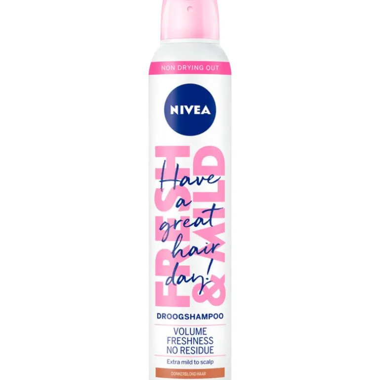 NIVEA Fresh Revive 3-in-1 Droogshampoo Donkerblond is de ideale dagelijkse haarverfrisser voor donkerblond haar. Deze vegan formule biedt direct een fris haargevoel en een aangename geur die de hele dag blijft hangen. Speciaal ontwikkeld om geen witte resten achter te laten, zorgt deze droogshampoo voor een natuurlijke look zonder ongewenste residu. Daarnaast droogt het je haar niet uit, waardoor het geschikt is voor alle haartypen. Perfect voor wie snel en gemakkelijk fris haar wil, zonder water. De extra milde formule is zacht voor de hoofdhuid, zodat je het dagelijks kunt gebruiken zonder je haar of hoofdhuid te belasten. NIVEA Fresh Revive 3-in-1 Droogshampoo Donkerblond geeft je donkerblonde haar een fris en verzorgd uiterlijk, ideaal voor een drukke levensstijl.