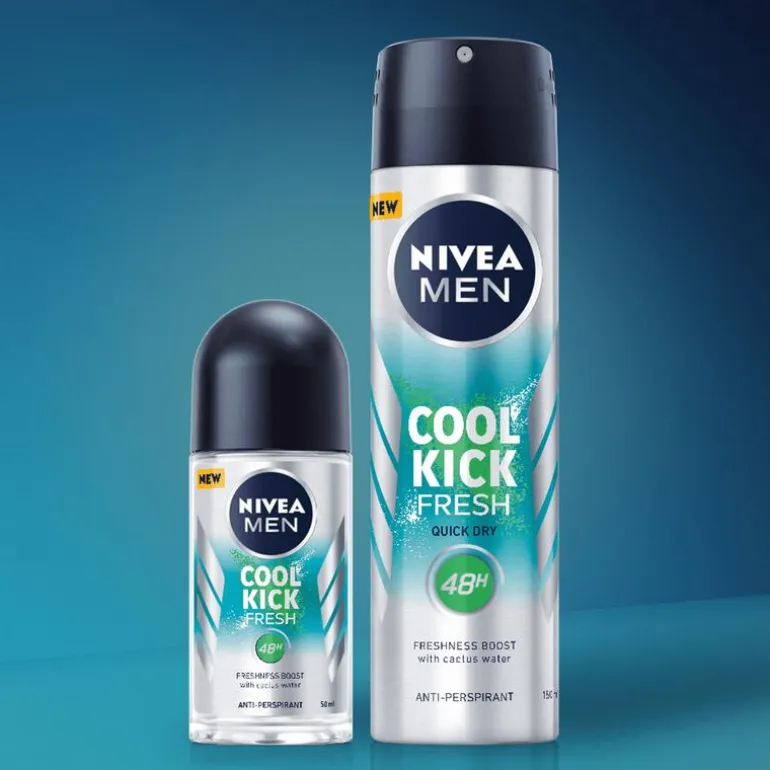 NIVEA MEN Fresh Kick Anti-Transpirant Spray biedt een krachtige frisheidskick dankzij de verfrissende kracht van cactuswater. Deze deo spray voor mannen zorgt voor een langdurig schoon en fris huidgevoel, terwijl het 72 uur betrouwbare bescherming biedt tegen zweet en ongewenste geuren.Met de innovatieve Derma 72u Active Protection technologie werkt deze deodorant voor mannen effectief samen met je huid voor optimale bescherming en comfort, zonder irritatie. De dermatologisch geteste formule is mild voor de huid en bevat geen ethylalcohol. Ideaal voor dagelijks gebruik.Kies voor NIVEA MEN Fresh Kick Spray en ervaar een deo spray die je de hele dag fris en vol energie houdt, zelfs tijdens de drukste dagen.