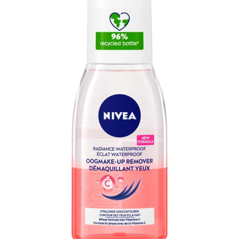 Verwijder je make-up op een effectieve manier met de NIVEA Verzorgende Oogmake-up Remover. Deze reinigingslotion reinigt je huid intensief en is zelfs opgewassen tegen de meest hardnekkige make-up, zoals waterproof producten en zware mascara. Hard wrijven is niet nodig dankzij de effectieve formule. Breng gewoon wat make-up remover aan op een wattenschijfje en reinig voorzichtig het gebied rond de ogen, beginnend bij de binnenkant en verplaatsend naar de buitenkant van je ogen.Reinigen is niet het enige wat deze oogmake-up remover doet. De formule is ook rijk aan verzorgende bestanddelen. NIVEA Verzorgende Oogmake-up Remover reinigt de gevoelige oogzone mild en is verrijkt met verzorgende vitamine C. Deze vitamine verfrist en bevordert de collageenproductie, wat bijdraagt aan een stevigere huid rond de ogen op de lange termijn. Siliconenvrij en vegan, geschikt voor contactlensdragers. Dermatologisch en oftalmologisch getest voor optimale huidvriendelijkheid en veiligheid. • Reinigt zelfs intens waterproof make-up• Verzorgt en hydrateert de huid• Mild voor de kwetsbare huid rond je ogen• Verpakt in een 96% gerecycled flesje• Verrijkt met vitamine C