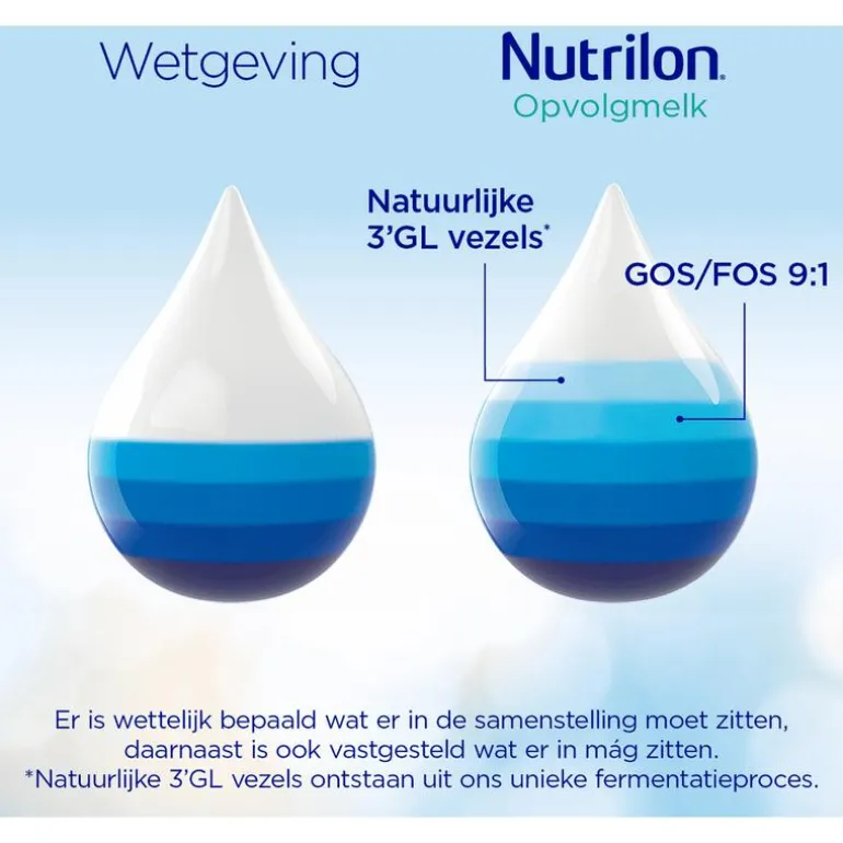 Nutrilon is de #1 meest gekozen opvolgmelk door ouders**. Gebaseerd op meer dan 125 onderzoek ontwikkelden onze toegewijde wetenschappers in het Nutricia Research Center in Utrecht onze flesvoeding met de unieke combinatie van scGOS/lcFOS en 3’GL vezels. De samenstelling van flesvoeding is wettelijk vastgelegd, ook vrijwillige ingrediënten worden gereguleerd door de wetgeving.