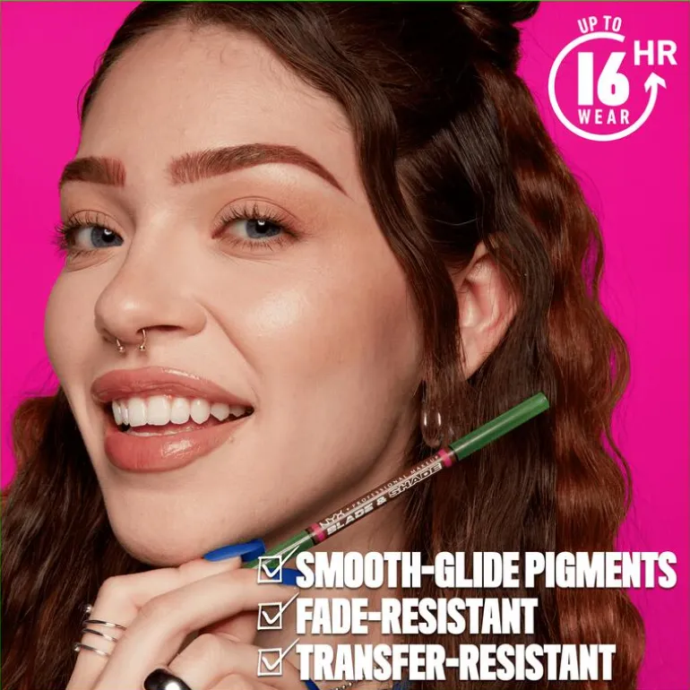 NYX Professional Make Up Blade N Shade Wenkbrauwpotlood tilt jouw wenkbrauwlook naar een hoger niveau! Het tweezijdige potlood is dé tool voor vollere, natuurlijk ogende wenkbrauwen. Gebruik de scherpe kant van de applicator voor extra definitie, en vervolgens de platte kant van de applicator om je wenkbrauwen in te kleuren. De zachte textuur blijft tot wel 16 uur lang zitten en zorgt voor een moeiteloze, precieze applicatie zonder transfer of vervagen. Geniet van natuurlijke, vollere wenkbrauwen met het NYX Professional Make Up Blade N Shade Wenkbrauwpotlood, de gehele dag door!