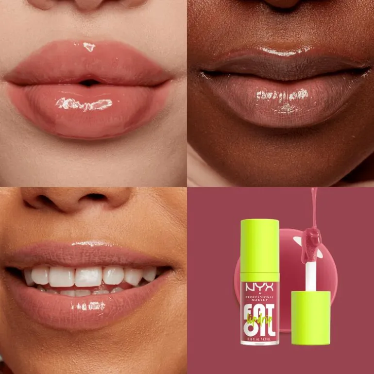 NYX Professional Makeup Fat Oil Lip Drip Lipgloss is de allereerste ‘lip drip’! Dompel je lippen onder in een overvloed aan weldadige eigenschappen. FAT* verzorging. FAT* kleur. FAT* hydratatie. De formule is verrijkt met kruipbraamolie, braambessenolie en squalaan voor mooie, glossy lippen die gehydrateerd blijven tot wel 12 uur lang. De stevige applicator zorgt ervoor dat je de olie makkelijk kunt aanbrengen, zo heb je aan één enkel laagje ruim voldoende om je lippen snel en volledig te omhullen voor een glossy effect. Geniet van mooie, volle, beschermde lippen met een overdadige glans en een intense verzorging. Bovendien is de formule vegan en cruelty-free. Een niet-plakkerige textuur die comfortabel aanvoelt op je lippen, nu verkrijgbaar in 6 romige kleuren met een extreem glanzende finish: de Fat Oil Lip Drip staat voor pure verwennerij! *intens