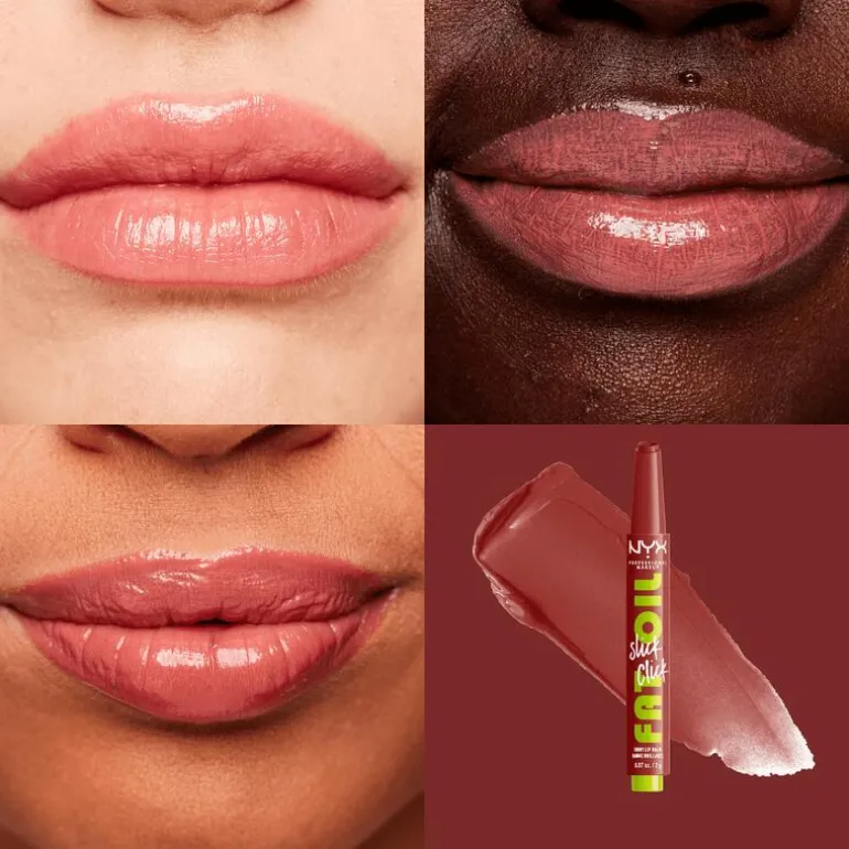 NYX Fat Oil Slick Click is een gepigmenteerde lippenbalsem in klikverpakking die precies de juiste hoeveelheid formule afgeeft. Snel, gemakkelijk en knoeivrij aan te brengen. Het enige wat je hoeft te doen is erop klikken en je lippen onderdompelen in een overvloed aan gunstige eigenschappen! Geef je lippen de verzorging die ze nodig hebben met de vegan formule op basis van avocado-, braambessen- en frambozenolie. Voor een overvloedige hydratatie, tot wel 12 uur lang! De lichte textuur voelt niet-plakkerig en ultracomfortabel aan, perfect voor dagelijks gebruik. Creëer een gladde, glanzende finish met luchtige pigmenten die voor royale accenten zorgen. Gepigmenteerde balsem in opklikbare verpakking voor een lichte kleur met een niet-plakkerige, glanzende afwerking en hydratatie Stap 1. Breng #thisiseverything lipscrub aan om je lippen te helpen hydrateren en verzachten.Stap 2. Gebruik de Fat Oil Slick Click voor een vleugje kleur en een langdurige hydratatie.Stap 3. Combineer Slick Click met een lipliner voor extra diepte en kleur. NYX Fat Oil Slick Click is een gepigmenteerde lippenbalsem in klikverpakking die precies de juiste hoeveelheid formule afgeeft. Snel, gemakkelijk en knoeivrij aan te brengen. Het enige wat je hoeft te doen is erop klikken en je lippen onderdompelen in een overvloed aan gunstige eigenschappen! Geef je lippen de verzorging die ze nodig hebben met de vegan formule op basis van avocado-, braambessen- en frambozenolie. Voor een overvloedige hydratatie, tot wel 12 uur lang! De lichte textuur voelt niet-plakkerig en ultracomfortabel aan, perfect voor dagelijks gebruik. Creëer een gladde, glanzende finish met luchtige pigmenten die voor royale accenten zorgen.Dit product is 100% veganistisch en vrij van dierlijke bestanddelen. Verantwoorde make-up! De formule glijdt moeiteloos en gelijkmatig over je lippen heen. Extreem zacht. Extreem gunstig. Verkrijgbaar in 12 meerdere tinten die geschikt zijn voor alle huidskleuren. Ontdek het snel en ga voor een extreem glanzende look of combineer met een lipliner voor extra diepte en kleur!NYX Professional staat bekend om haar kwalitatieve, pigmentrijke make-upproducten en weerspiegelt de nieuwste make-up trends. In het portfolio van NYX vind je alles, van lippenstiften en oogschaduw tot eyeliners en concealers. Zowel populair bij het grote publiek, als bij professionele visagisten over de hele wereld!
