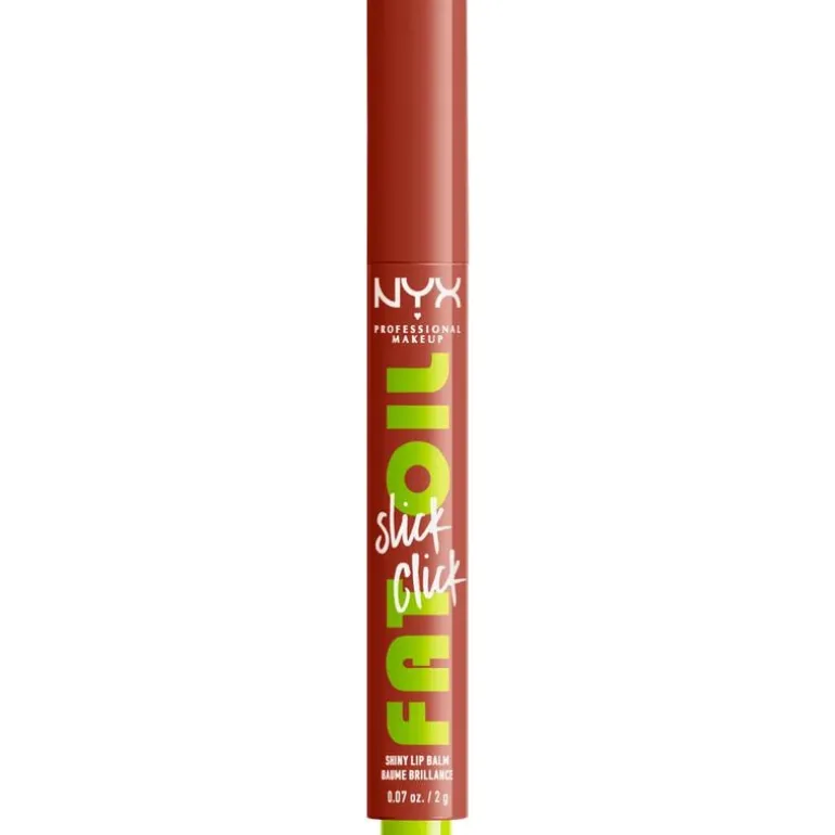 NYX Fat Oil Slick Click is een gepigmenteerde lippenbalsem in klikverpakking die precies de juiste hoeveelheid formule afgeeft. Snel, gemakkelijk en knoeivrij aan te brengen. Het enige wat je hoeft te doen is erop klikken en je lippen onderdompelen in een overvloed aan gunstige eigenschappen! Geef je lippen de verzorging die ze nodig hebben met de vegan formule op basis van avocado-, braambessen- en frambozenolie. Voor een overvloedige hydratatie, tot wel 12 uur lang! De lichte textuur voelt niet-plakkerig en ultracomfortabel aan, perfect voor dagelijks gebruik. Creëer een gladde, glanzende finish met luchtige pigmenten die voor royale accenten zorgen. Gepigmenteerde balsem in opklikbare verpakking voor een lichte kleur met een niet-plakkerige, glanzende afwerking en hydratatie Stap 1. Breng #thisiseverything lipscrub aan om je lippen te helpen hydrateren en verzachten.Stap 2. Gebruik de Fat Oil Slick Click voor een vleugje kleur en een langdurige hydratatie.Stap 3. Combineer Slick Click met een lipliner voor extra diepte en kleur. NYX Fat Oil Slick Click is een gepigmenteerde lippenbalsem in klikverpakking die precies de juiste hoeveelheid formule afgeeft. Snel, gemakkelijk en knoeivrij aan te brengen. Het enige wat je hoeft te doen is erop klikken en je lippen onderdompelen in een overvloed aan gunstige eigenschappen! Geef je lippen de verzorging die ze nodig hebben met de vegan formule op basis van avocado-, braambessen- en frambozenolie. Voor een overvloedige hydratatie, tot wel 12 uur lang! De lichte textuur voelt niet-plakkerig en ultracomfortabel aan, perfect voor dagelijks gebruik. Creëer een gladde, glanzende finish met luchtige pigmenten die voor royale accenten zorgen.Dit product is 100% veganistisch en vrij van dierlijke bestanddelen. Verantwoorde make-up! De formule glijdt moeiteloos en gelijkmatig over je lippen heen. Extreem zacht. Extreem gunstig. Verkrijgbaar in 12 meerdere tinten die geschikt zijn voor alle huidskleuren. Ontdek het snel en ga voor een extreem glanzende look of combineer met een lipliner voor extra diepte en kleur!NYX Professional staat bekend om haar kwalitatieve, pigmentrijke make-upproducten en weerspiegelt de nieuwste make-up trends. In het portfolio van NYX vind je alles, van lippenstiften en oogschaduw tot eyeliners en concealers. Zowel populair bij het grote publiek, als bij professionele visagisten over de hele wereld!