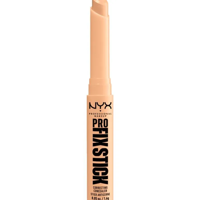 NYX Pro Fix Stick is een corrigerende concealer voor een gezondere, egaler uitziende huid. Donkere kringen? Verkleuringen? Roodheid? De Pro Fix-stick biedt de ideale oplossing. Pak huidstress aan en wees lief voor je huid. Met hyaluronzuur voor een zachte finish die nooit droog aanvoelt. Verkrijgbaar in 24 kleuren om imperfecties te camoufleren en je huid te doen stralen. Deze romige multitasker levert bovendien een volledige dekking met een matte finish die tot wel 12 uur houdt. De vegan en dierproefvrije formule zonder dierlijke bestanddelen laat geen plakkerig gevoel achter en is veegvast en transferproof.Deze concealer stick laat de huid ademen en voelt ongelofelijk comfortabel aan. Breng hem moeiteloos aan onder of op je foundation voor een natuurlijk stralende teint. De nauwkeurige punt geeft je de totale controle om het verschil te maken. Een fantastische oplossing om de zichtbaarheid van poriën en fijne lijntjes te verminderen!Kies uit een breed assortiment aan tinten voor alle behoeften en huidtinten. Neutraliseer roodheid op alle huidtinten met de kleur Green of camoufleer verkleuringen op een lichte huid met Pink. Yellow corrigeert donkere kringen en doet een lichte of gemiddelde huid stralen. Kortom, kies jouw optimaal dekkend kleur en ervaar het verschil!NYX Professional staat bekend om haar kwalitatieve, pigmentrijke make-upproducten en weerspiegelt de nieuwste make-up trends. In het portfolio van NYX vind je alles, van lippenstiften en oogschaduw tot eyeliners en concealers. Zowel populair bij het grote publiek, als bij professionele visagisten over de hele wereld!