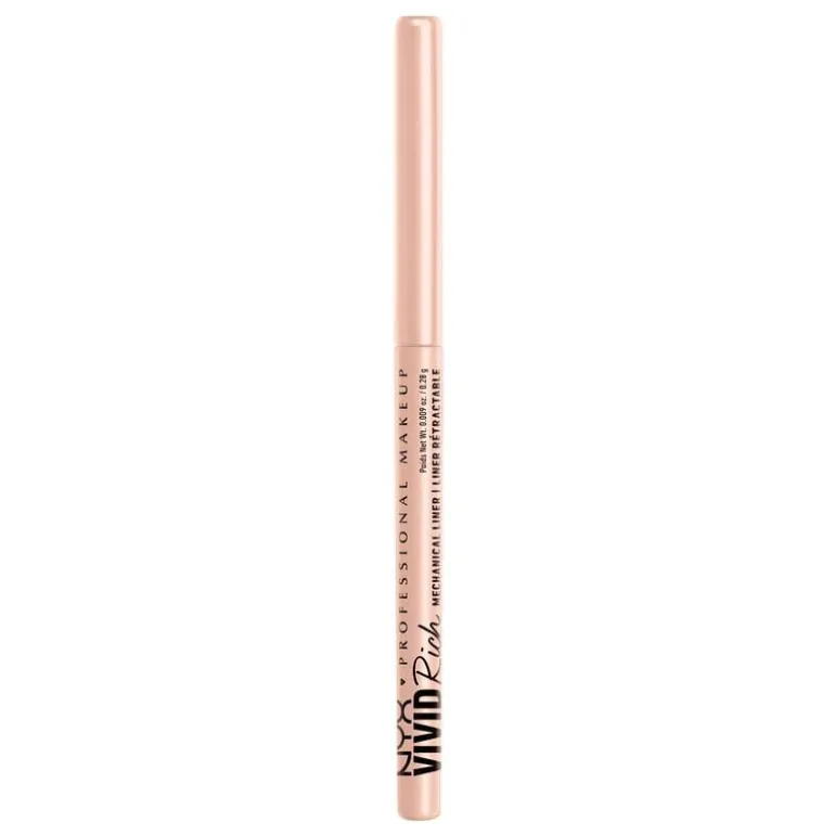 Nyx Professional Makeup Vivid Rich Mechanical Pencil biedt prachtige matte, glinsterende en metallic op edelstenen geinspireerde kleuren. De 12 tinten zijn rijk aan roomzachte, edelsteenkleurige pigmenten en zijn dankzij het twist-up potlood gemakkelijk aan te brengen in één beweging. Mix en match verschillende stralende tinten of kies voor een monochrome uitstraling. Van Spicy Pearl & Amber Stunner tot Aquamarine Dream: met deze levendige eyeliner creëer je de kleurrijkste looks. Toon je van je creatiefste kant en gebruik onze mooie levendige liners om indrukwekkende looks te creëren. Ideaal voor zowel beginners als echte pro’s en voor alle huidtypes! Mat, glanzend en metallic oogpotlood Stap 1. Breng Nyx Professional Makeup Vivid Rich Mechanical Pencil aan langs je bovenste wimperlijn om een gemakkelijke oogmake-uplook te creëren.Stap 2. Gebruik de fijne borstelpunt van de Vivid Matte vloeibare liner om in een handomdraai een perfecte wing of grafische lijnen aan te brengen.Stap 3. Creëer met de Epic Wear Liner stick kleurrijke looks voor een waterproof, smugde-proof en fade-proof resultaat.Stap 4. Teken moeiteloos vloeibare zwarte lijntjes of een vlijmscherpe wing met de Epic Ink Liquid liner. Nyx Professional Makeup Vivid Rich Mechanical Pencil biedt prachtige matte, glinsterende en metallic op edelstenen geinspireerde kleuren. De 12 tinten zijn rijk aan roomzachte, edelsteenkleurige pigmenten en zijn dankzij het twist-up potlood moeiteloos aan te brengen in één beweging. Mix en match verschillende stralende tinten of kies voor een monochrome uitstraling. Van Spicy Pearl & Amber Stunner tot Aquamarine Dream: met deze levendige eyeliner creëer je de kleurrijkste looks. Toon je van je creatiefste kant en gebruik onze mooie levendige liners om indrukwekkende looks te creëren. Ideaal voor zowel beginners als echte pro’s en voor alle huidtypes!Linerlooks worden gemakkelijk met NYX Vivid Rich. Kies je kleur en breng de kleurrijke eyeliner aan langs je bovenste wimperlijn om een gemakkelijke oogmake-uplook te creëren. Of experimenteer met vloeiende lijnen en wings.De NYX Vivid Rich Eyeliner is verkrijgbaar in de kleuren Always Onyx, Sapphire Bling, Truffle Diamond, Amber Stunner, Aquamarine Dream, Emerald Empire, Tigers Prize, Quartz Queen, Spicy Pearl, Smokin Topaz, Under the Moonstone en It’s Giving Jade. Creëer dus makkelijk elke look die je maar kunt bedenken!NYX Professional staat bekend om haar kwalitatieve, pigmentrijke make-upproducten en weerspiegelt de nieuwste make-up trends. In het portfolio van NYX vind je alles, van lippenstiften en oogschaduw tot eyeliners en concealers. Zowel populair bij het grote publiek, als bij professionele visagisten over de hele wereld!