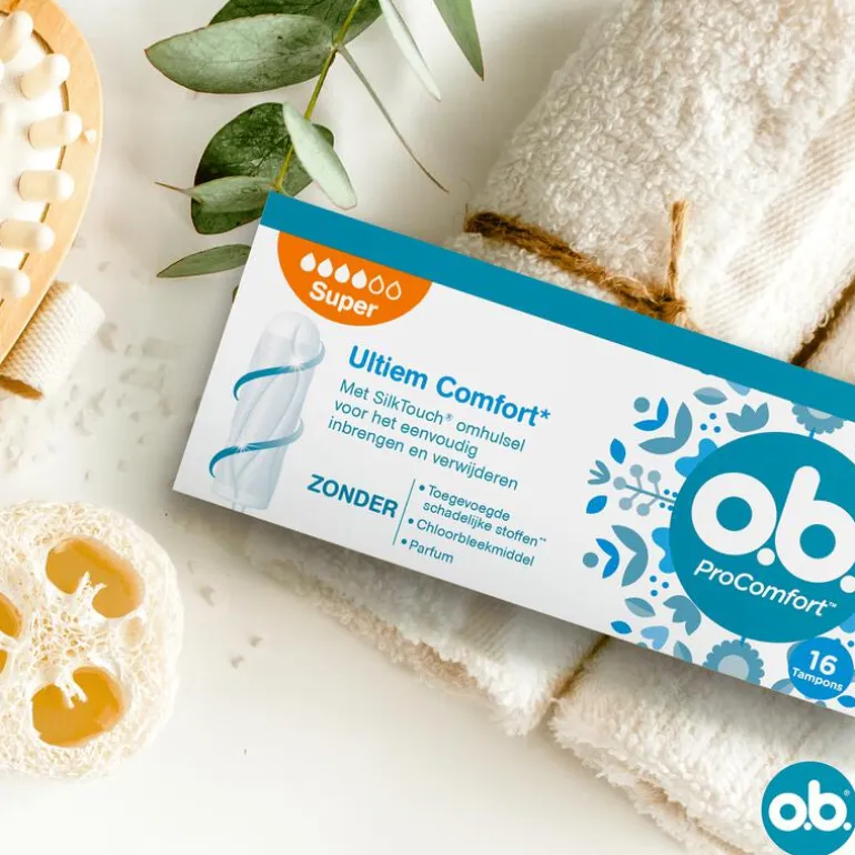 o.b.® ProComfort® Super Tampons met Dynamic Fit™ -technologie en SilkTouch®-oppervlak zorgen voor ultiem comfort* en betrouwbare bescherming voor de zwaardere dagen van uw menstruatie (* binnen het o.b.®-assortiment). De Dynamic Fit-technologie met 3D-expansie zorgt ervoor dat de tampon zich op een natuurlijke wijze naar het lichaam vormt en de unieke in elkaar overlopende groeven helpen de vloeistof naar de kern van de tampon te leiden. Met SilkTouch oppervlak voor probleemloos inbrengen en verwijderen. De tampons zijn gynaecologisch getest, hebben een kern die 100% plantaardig is, zonder schadelijke chemische stoffen (o.a. pesticiden). o.b.® ProComfort® Super tampons zijn chloor- en parfumvrij.