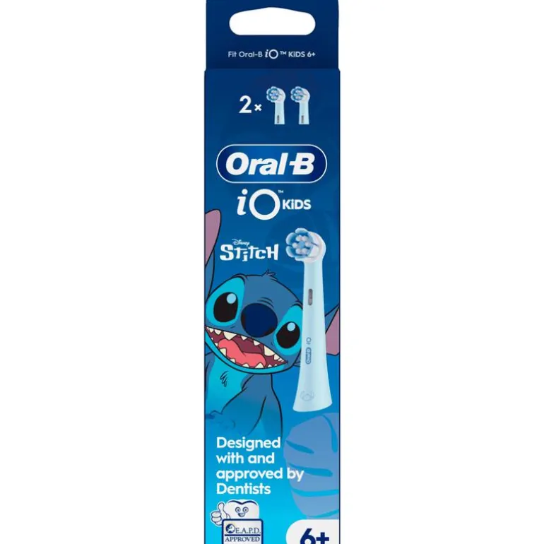 Met de Oral-B iO Kids 6+ opzetborstel kunnen kinderen plezier beleven met Stitch én profiteren van de zachte, effectieve reiniging van een door tandartsen aanbevolen tandenborstel van Oral-B. De extra zachte borstelharen en kleine ronde kop zijn speciaal ontworpen voor kinderen, krachtig tegen gaatjes en zacht voor tandvlees en wiebelende tanden.