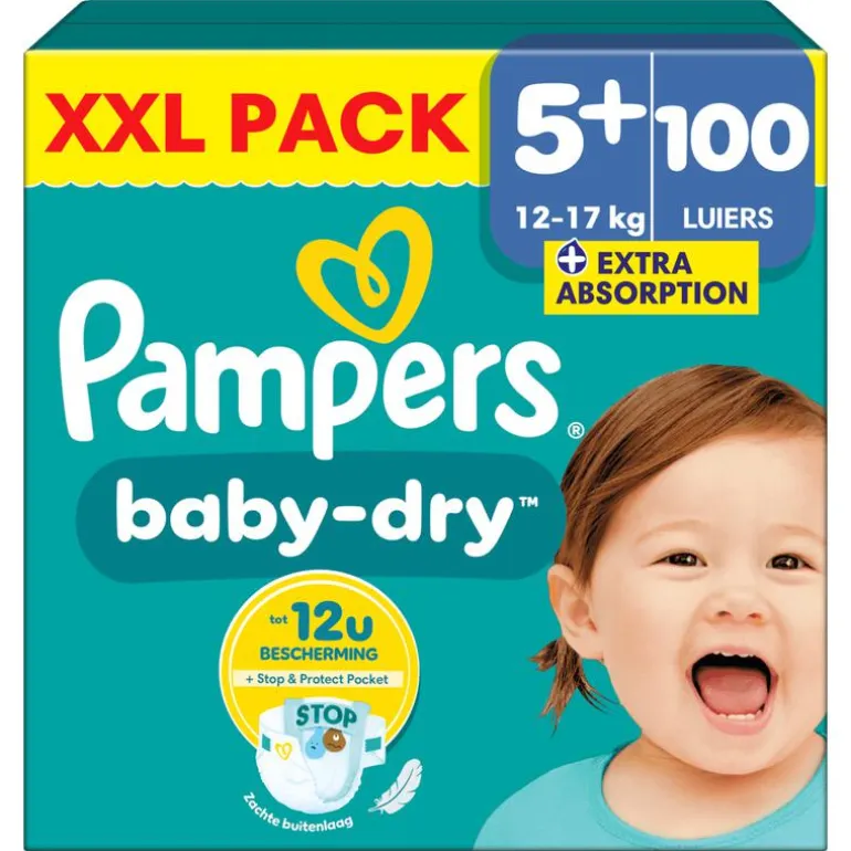 Pampers Baby Dry XXL Pack Luiers Maat 5+ 12-17 KG 100 Stuks