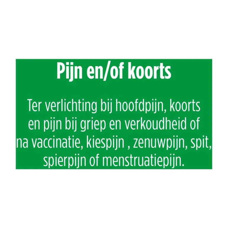Indicatie: Te gebruiken bij de symptomatische behandeling van milde tot matige pijn en/of koorts.
