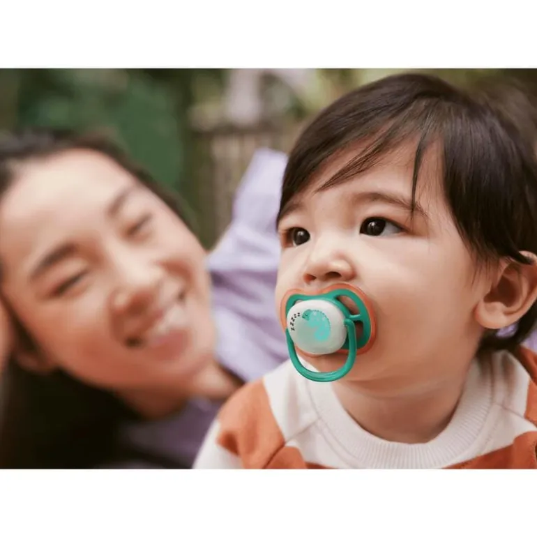Dankzij het langdurig oplichtende schildje van de ultra air-fopspeen vind je de speen van je baby snel in het donker, zonder dat je de lampen aan hoeft te doen.