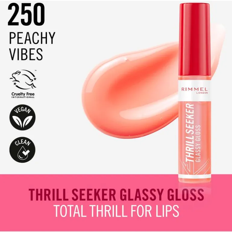 Rimmel London Thrill Seeker Glassy Gloss zorgt onmiddellijk voor voller uitziende lippen met ´glassy´ glans. De vegan formule van dit product is rijk aan hyaluronzuur en bevat een antioxidantencomplex dat de lippen intens hydrateert en voedt, zodat ze er weer mooi gezond uitzien. Deze hydraterende gloss van Rimmel is voorzien van een handige donzige ‘doe foot’ applicator, waarmee je de juiste hoeveelheid lipgloss perfect gelijkmatig over je lippen verdeelt.