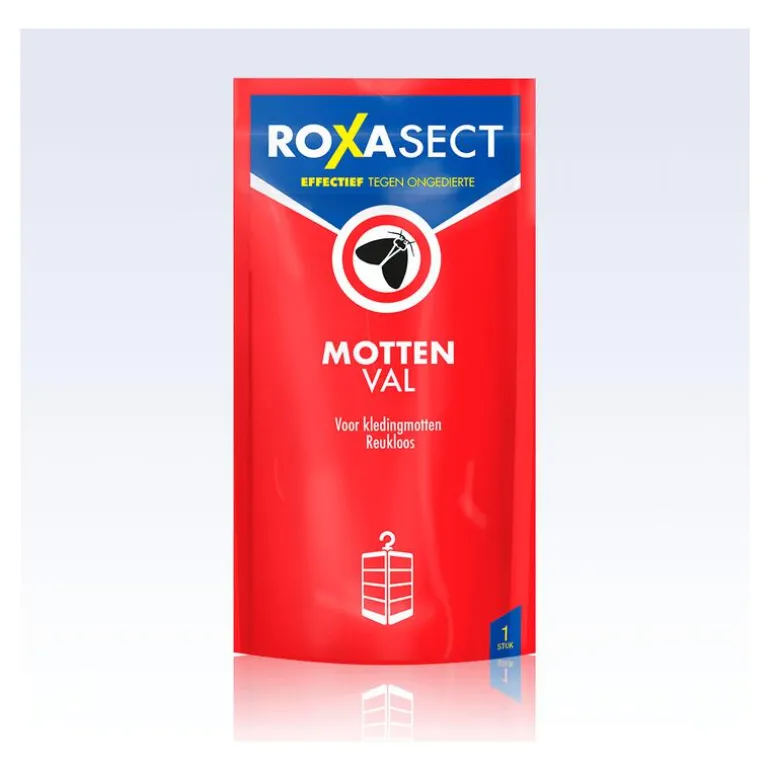 Ben jij helemaal klaar met al die motten in je kledingkasten en die gaatjes in jouw mooie kleding? Roxasect Mottenval houdt jouw kledingkast mottenvrij. De Roxasect Mottenval bestrijdt motten. De motten verschuilen zich in de val en worden vervolgens door de lijmlaag op de val vastgehouden. De Roxasect Mottenval heeft een geïntegreerde haak en kan hiermee aan kledinghangers of rekken opgehangen worden. De mottenval kan ook met de plakstrip aan de binnenzijde van de kledingkast bevestigd worden.