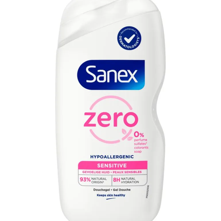 Hypoallergene douchegel Sanex Zero%: Maak je huid nat onder de douche of in bad, breng de body wash aan op je handen of gebruik een sponsje of een washandje om het op je huid aan te brengen. Afspoelen en drogen met een handdoek.