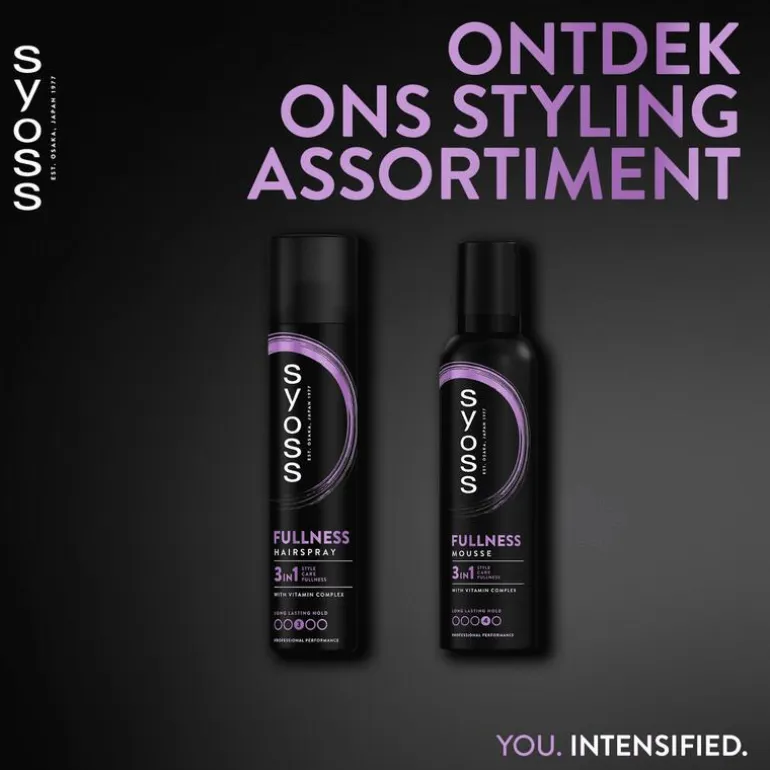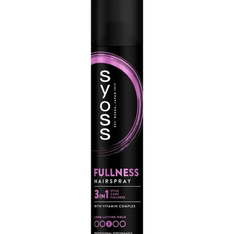 - lon- geïnspireerde Syoss Fullness Haarspray, ontwikkeld met en getest door kappers, zorgt voor een directe transformatie van dun en fijn haar in een volle hairstyle – voor volumineuze salon looks thuis.
