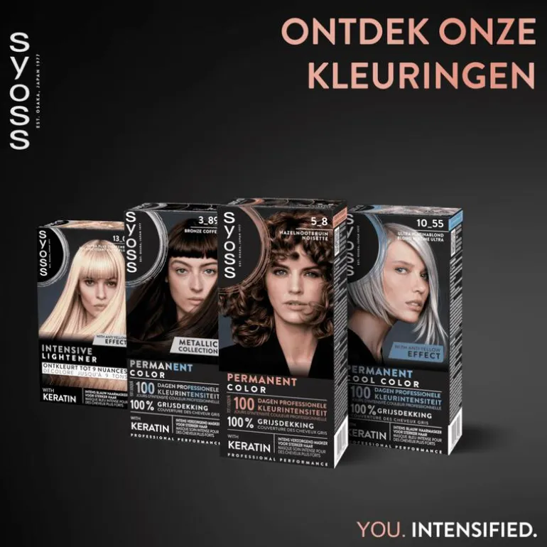 Bij Syoss is het onze missie om je de salonkwaliteit te bieden die je haar verdient. Syoss staat voor professionele kwaliteit en biedt een fantastisch resultaat bij elk gebruik. Onze formules zijn zowel ontwikkeld en getest door kappers. Met Syoss haarverf brengen we de nieuwste trendy haarkleuren zoals ze rechtstreeks uit de salon komen.