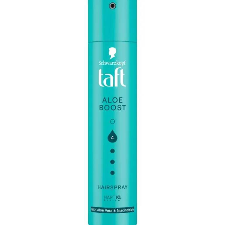 Taft Aloe Boost Hairspray versterkt en verzorgt het haar, voor een langdurige hold en een zachte finish zonder te plakken. De formule bevat aloe vera om het haar te hydrateren en te verzorgen, en niacinamide om het haar te versterken. Het helpt je kapsel te beschermen tegen vocht. Deze spray bevat het HAPTIQ System, dat micro-bindingen in het haar creëert en de haarstructuur versterkt. Voor een prachtig resultaat dat je ziet en voelt.
