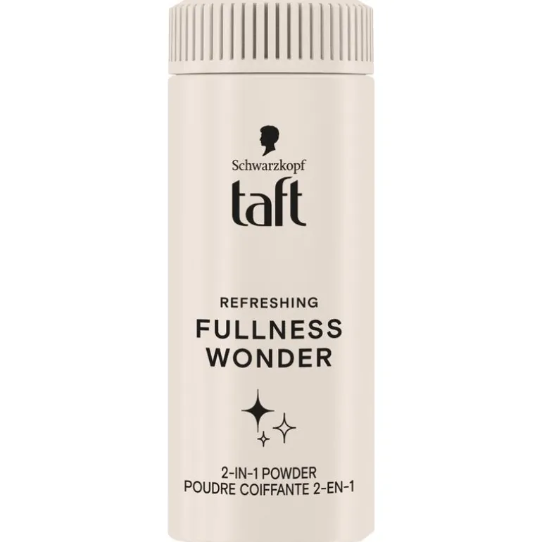 De 2-in-1 Taft Fullness Wonder Powder is een lichtgewicht styling poeder dat zorgt voor extra volume, onmiddelijke frisheid en anti-grease. De formule is geschikt voor alle haartypes, plakt niet en verzwaart het haar niet.