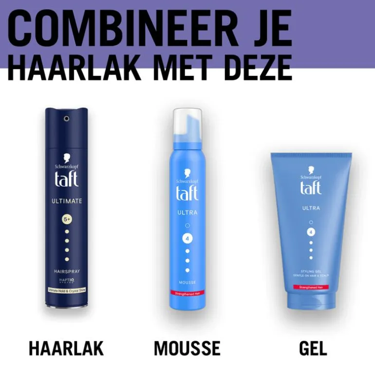 Taft heeft een compleet assortiment stylingproducten voor een perfecte, langdurige fixatie. Je kapsel is klaar om elke uitdaging aan te kunnen! Creëer met de Taft styling producten jouw unieke stijl die de hele dag in model blijft.