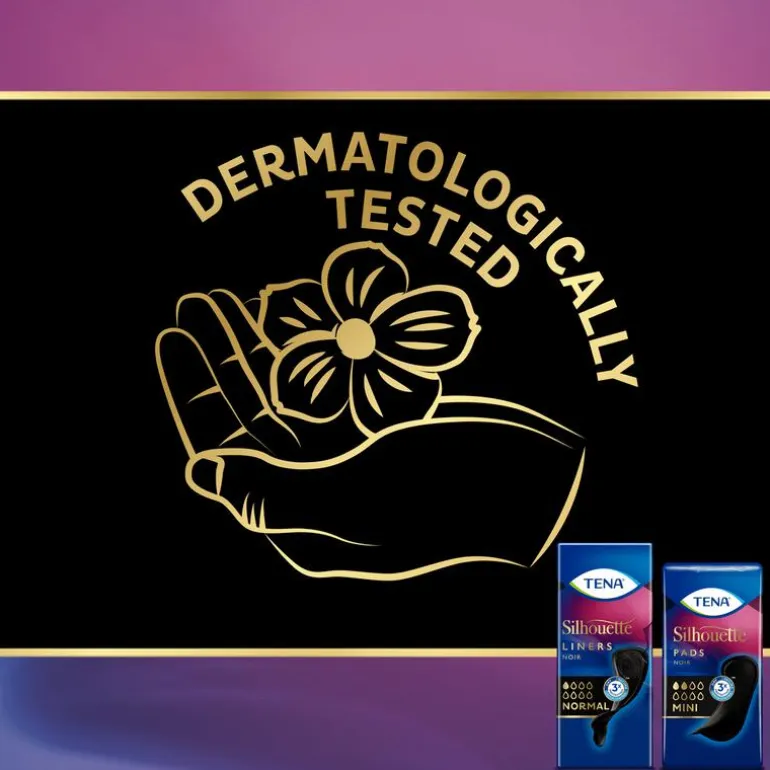 TENA Silhouette Noir Normal incontinentie-inlegkruisjes zijn speciaal ontwikkeld voor zwart ondergoed. Of u nu in de sportschool bent om u om te kleden of thuis in uw slaapkamer, metTENA Silhouette-inlegkruisjes kleedt u zich met vertrouwen uit. Het is net zo dun als een normaal inlegkruisje en de zwarte kleur past perfect bij uw zwarte ondergoed, zodat u niet eens merkt dat u iets draagt. TENA Silhouette Noir Normal biedt drievoudige bescherming tegen doorlekken, ongewenste geurtjes en een vochtig gevoel, om ervoor te zorgen dat druppels en licht urineverlies diep worden ingesloten in het incontinentieverband. Het is dermatologisch getest en vrij van parfum. Onzichtbaar in uw ondergoed. Beschermt als TENA.
