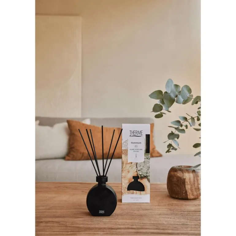 Therme Hammam Home Perfume Sticks creëren een unieke sfeer en geurbeleving in huis. Geniet tot wel 12 weken lang van de oriëntaalse geur van cederhout gecombineerd met warme oosterse kruiden en aromatische bergamot.