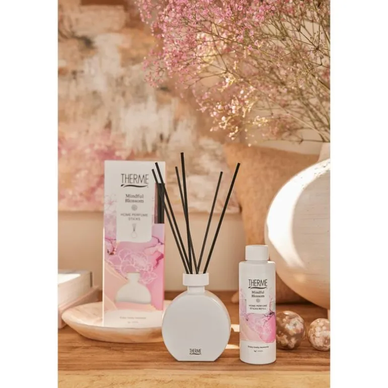 THERME Mindful Blossom Refill Home Perfume Sticks is een navulling voor THERME Home Perfume Sticks. Met deze refill vul je je bestaande Therme home parfum fles bij; zo geniet je nog langer van de heerlijke geurverspreiding, het is beter voor het milieu en voordeliger voor je portemonnee. Ontspan en prikkel je zintuigen met deze luxe wellness beleving.