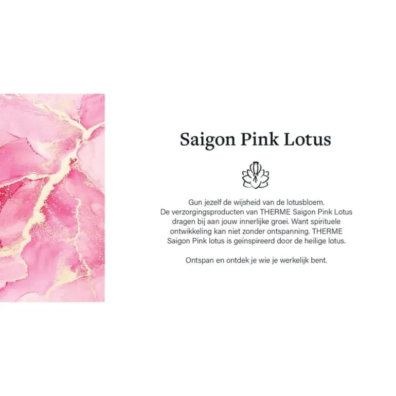 Therme Saigon Pink Lotus is geïnspireerd op de heilige lotus, een symbool voor transformatie en schoonheid. Creëer je eigen wellnessritueel en verwen je huid na het douchen met een Therme Saigon Pink Lotus verzorgingsproduct.