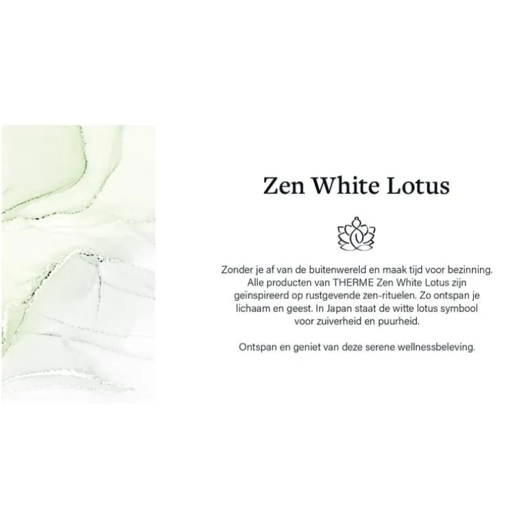 Therme Zen White Lotus Eau de Parfum is een luxe parfum waarmee je zolang mogelijk van je favoriete geur kan genieten. Met de serene geur van witte lotus gecombineerd met aromatische jasmijn en subtiele witte musk. Therme Zen White Lotus is geïnspireerd op rustgevende Zen-rituelen en de symboliek van de witte lotus; transformatie en puurheid.
