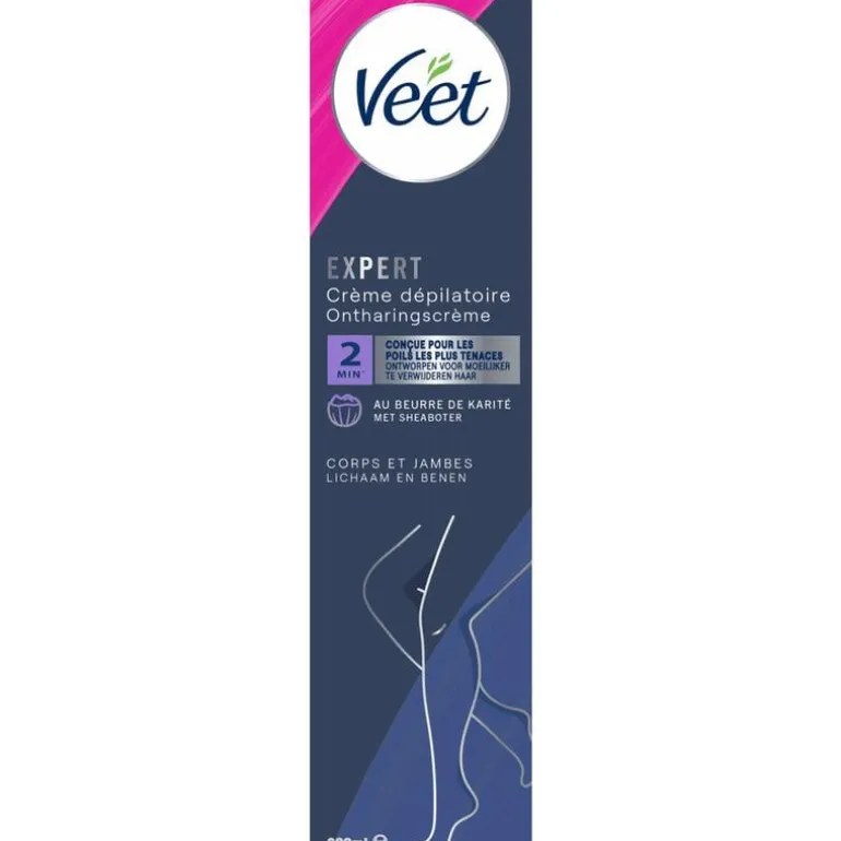 Veet Expert Ontharingscrème is geformuleerd met sheaboter en verrijkt met een vochtinbrengende crème die van nature in de huid voorkomt. Ontworpen voor moeilijker te verwijderen haar, het is effectief vanaf 2 minuten en houdt de huid gehydrateerd. Dermatologisch getest en geschikt voor alle huidtypes, inclusief gevoelige huid.