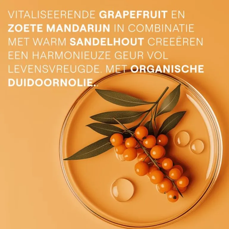 Met deze douchecrème met de opwekkende geur van grapefuit, mandarijn en sandelhout begin je je dag vol vitaliteit. Reinigt mild en droogt je huid niet uit. Biologische sesamolie behoudt de vochtbalans van je huid.