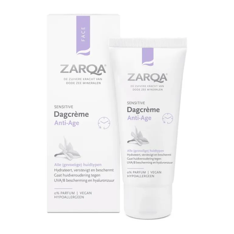 Zarqa Dagcrème Anti-Age bevat de anti-aging ingrediënten hyaluronzuur, vitamine A en vitamine E. Het anti-age complex met jojoba-olie beschermt op natuurlijke wijze tegen huidveroudering door schadelijke invloeden van buitenaf buiten de deur te houden. De huid is beschermd tegen luchtvervuiling en UV-stralen, waardoor de huid langer glad, soepel en jong blijft. Maakt de huid zacht en stevig en is geschikt voor alle huidtypen, zelfs de meeste gevoelige.
