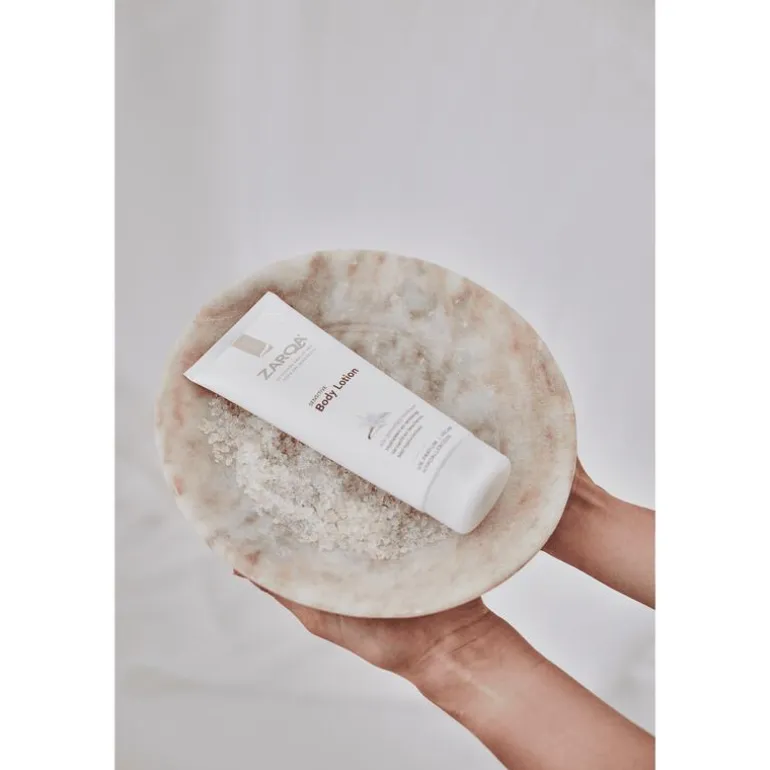 Zarqa Body Lotion verzacht, verstevigt en hydrateert de huid na het douchen. De voedende lotion met hyaluronzuur helpt je huid beter vocht vast te houden, waardoor je huid gladder en soepeler aanvoelt. De hydraterende formule voorkomt uitdroging en herstelt de natuurlijke huidbarrière. Zarqa Body Lotion beschermt tegen schadelijke invloeden van buitenaf, waaronder UV-straling en luchtvervuiling.
