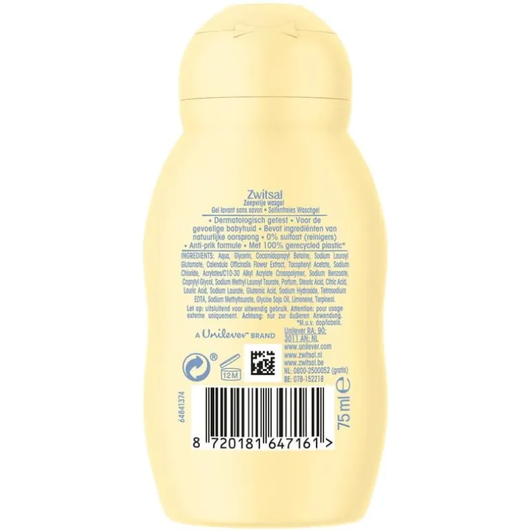 Niets is zo heerlijk zacht als de huid van jouw baby en net als jij willen wij dat zo houden. Daarom zorgen wij er al bijna 100 jaar voor dat onze babyverzorgingsproducten passen bij de speciale eigenschappen van het babyhuidje. We vinden het belangrijk dat onze producten mild, veilig en zacht zijn voor de huid van je baby. Daarom besteden wij veel aandacht aan de kwaliteit van onze producten. Om de kwaliteit en mildheid van onze producten te garanderen, worden al onze producten dermatologisch getest. Bovendien zijn onze producten mild en pH-huidvriendelijk. We streven naar een circulaire economie waarin we zoveel mogelijk plastic verpakkingen hergebruiken of recyclen. Waar mogelijk vermijden we het gebruik van plastic. Als er nog geen kwalitatief goed alternatief beschikbaar is, gebruiken we minder plastic of beter plastic. De fles van deze zeepvrije wasgel is gemaakt van 100% gerecycled plastic.* *M.u.v. dop/labels